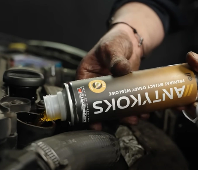 - Geben Sie Ceramizator ANTYKOKS OIL in den Öleinfüllstutzen. Eine Dose pro 5 Liter Motoröl.